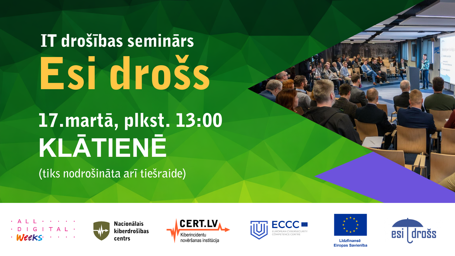 Mērķauditorija: Valsts un pašvaldību iestāžu atbildīgās personas par kiberdrošību, būtisko pakalpojumu sniedzēji, svarīgo pakalpojumu sniedzēji, kā arī citi interesenti, kuri darbojas kiberdrošības jomā.