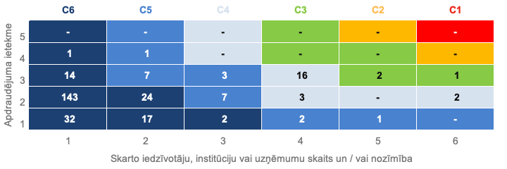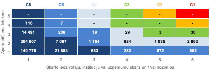 C6 – ikdienas apdraudējumi, ietekmē atsevišķus IT pakalpojumu saņēmējus, nenozīmīga ietekme uz uzņēmumiem vai valsts un pašvaldību iestādēm.