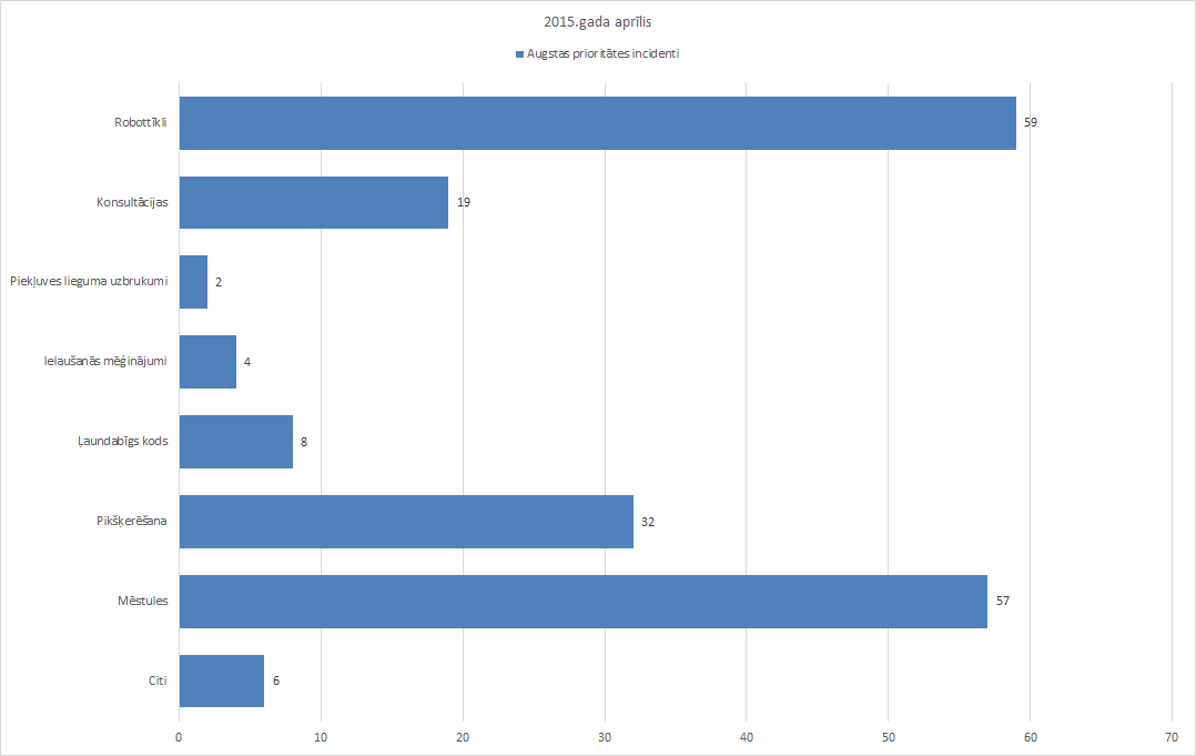 CERT.LV reģistrētie augstas prioritātes incidenti no 01.04.2015. līdz 30.04.2015.