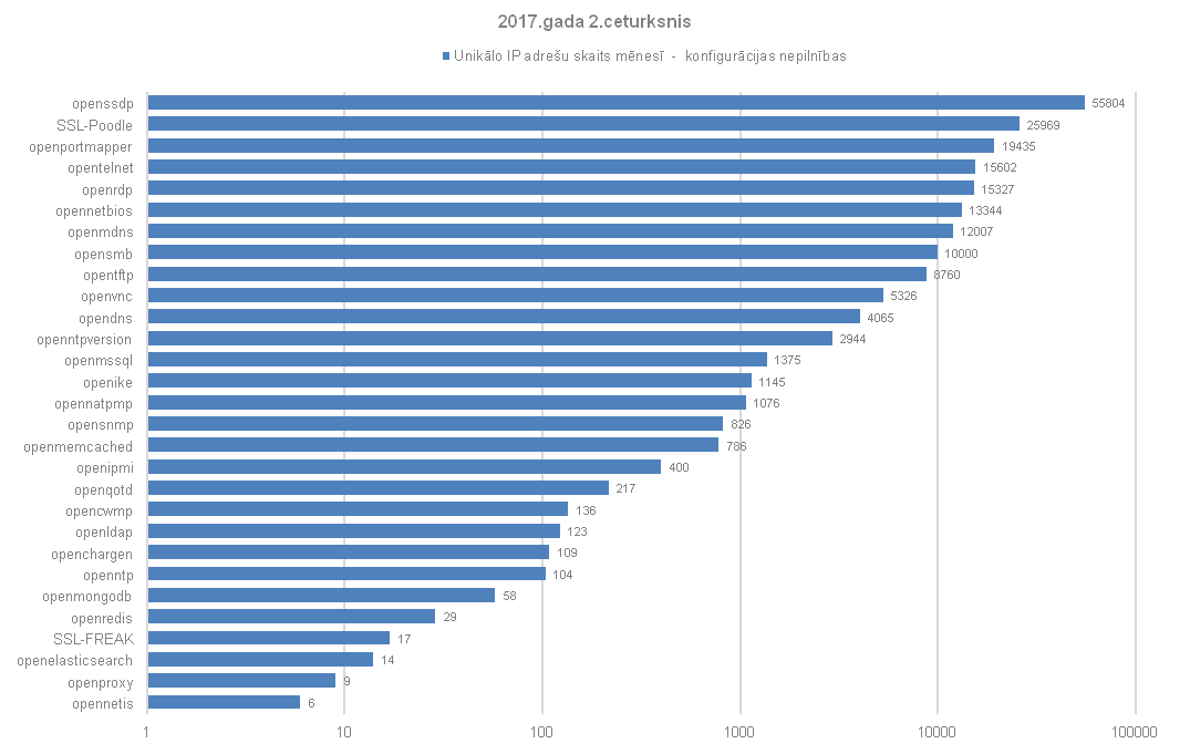 CERT.LV reģistrēto unikālo IP adrtešu skaits 2017. gada 2. ceturksnī ar apdraudējuma veidu - konfigurācijas nepilnības