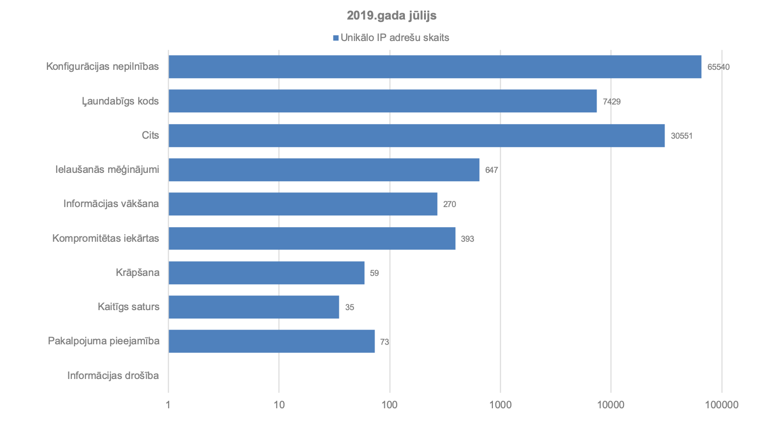 CERT.LV reģistrēto unikālo IP adrešu skaits 2019. gada jūlijā ar apdraudējuma veidu - konfigurācijas nepilnības