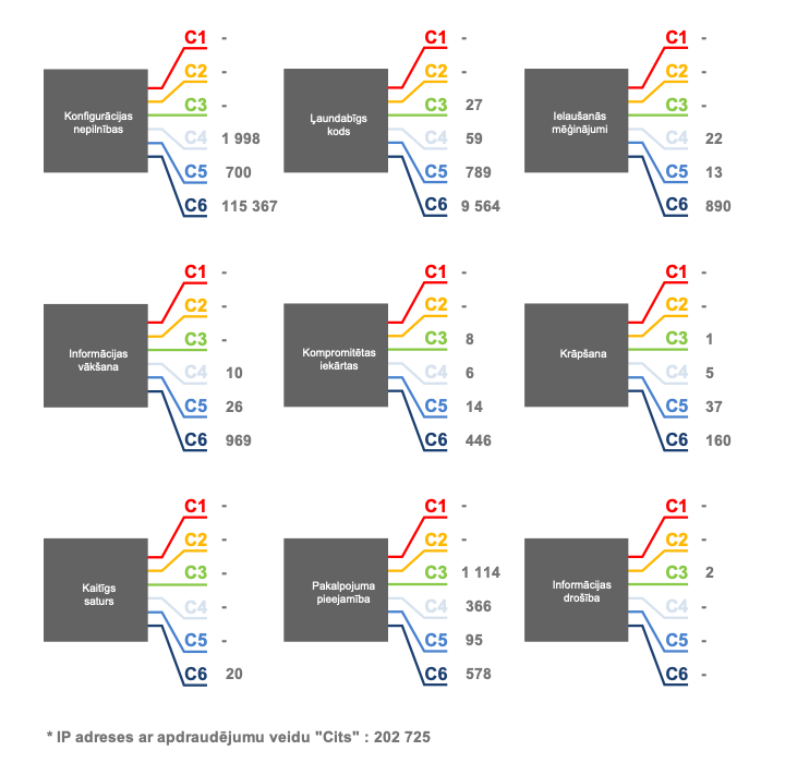 C2 – augstas nozīmes apdraudējumi, ietekmētas valsts iestādes, nacionālā IT infrastruktūra;