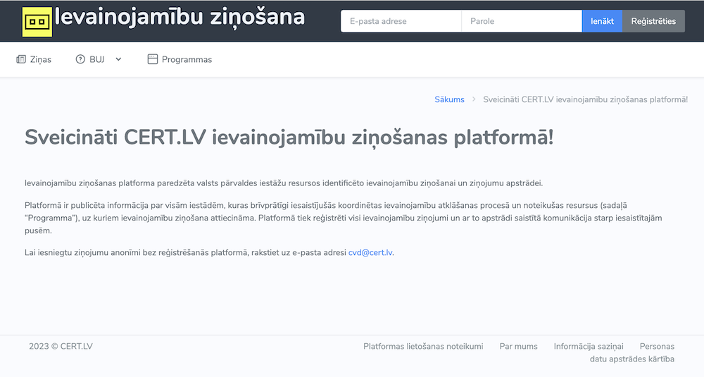 Ar informatīvo ziņojumu “Par koordinētas ievainojamību atklāšanas procesa ieviešanu valsts pārvaldē” ir uzsākta koordinētas ievainojamību atklāšanas procesa ieviešana valsts pārvaldē, paredzot iespēju Latvijas valsts un pašvaldību iestādēm brīvprātīgi iesaistīties koordinētas ievainojamību atklāšanas procesā.