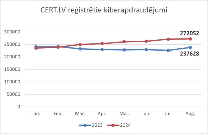 Augustā CERT.LV reģistrētas 27 2052 apdraudētas unikālas IP adreses, kas ir augstākais rādītājs šogad. Pret iepriekšējo mēnesi pieaugums ir bikls, bet salīdzinājumā ar 2023. gada augustu tas ir par 14.5% vairāk.