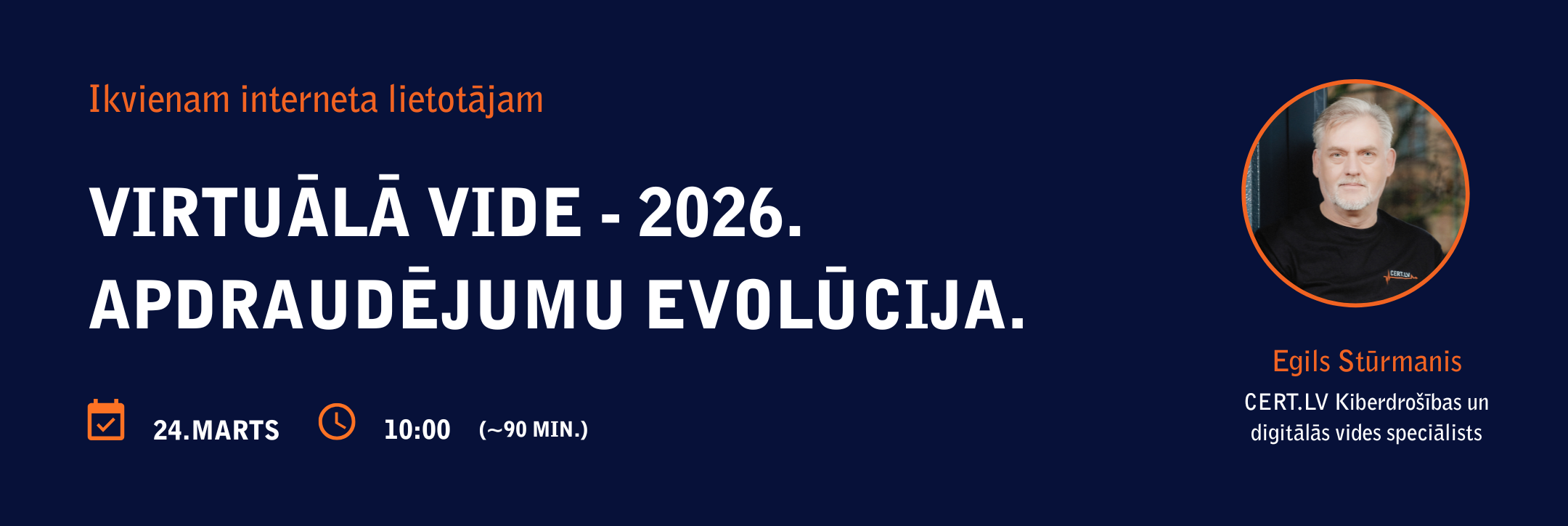Tiešsaistes seminārs “Virtuālā vide – 2026. Apdraudējumu evolūcija”